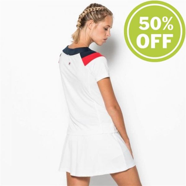 Camisas Fila Mujer Blancas / Rojas / Azul Marino - Shirt Susan Sporty Tennis Shirt With Crew Neck -