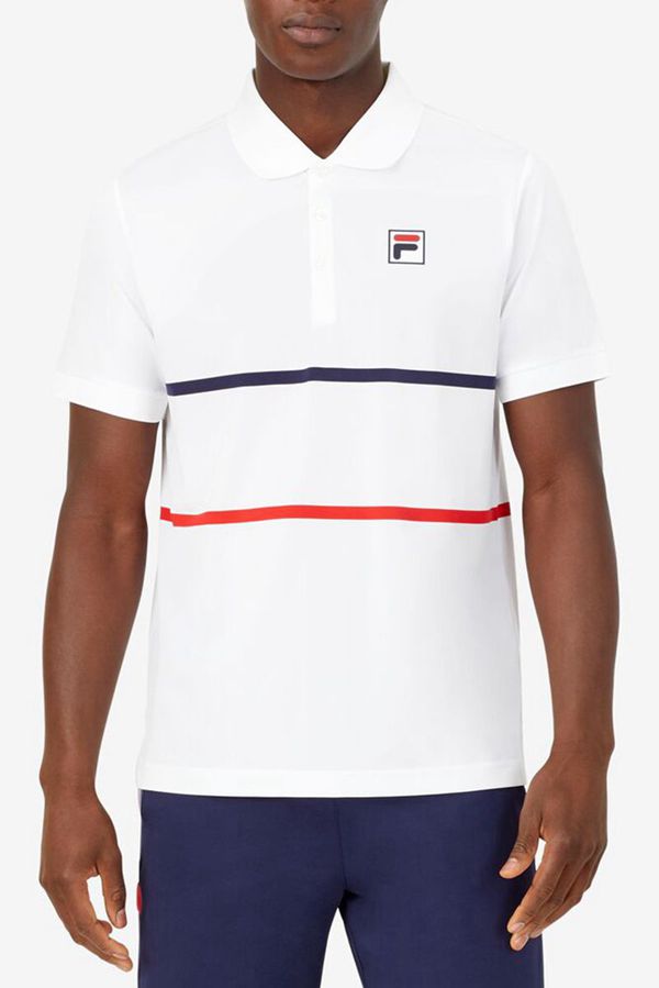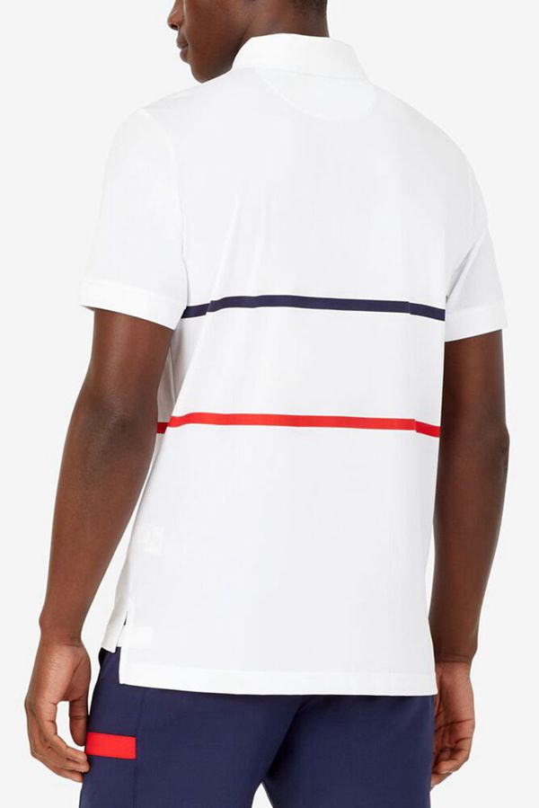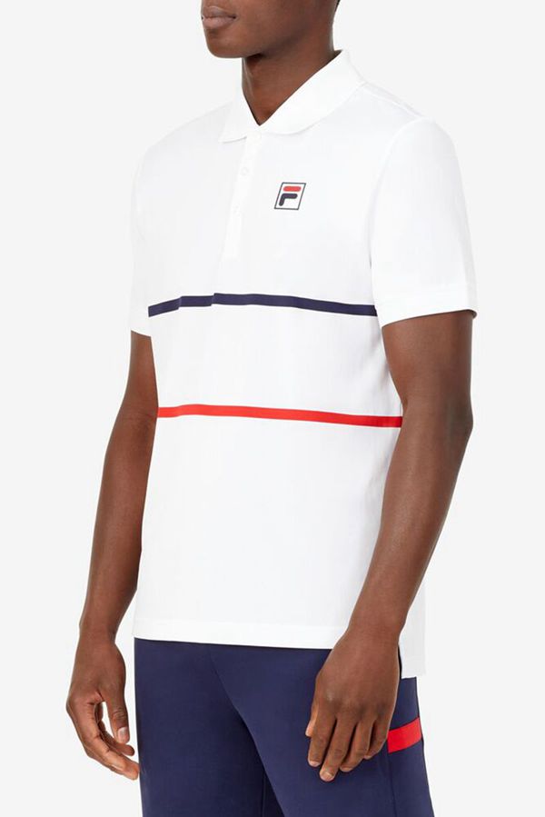 Camisas Polo Fila Hombre Blancas / Azul Marino / Rojas - Short Sleeve Tennis With Double Stripe - Es