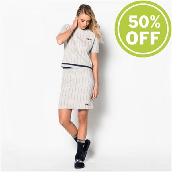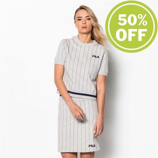 Camisetas Manga Corta Fila Mujer Gris Claro - Bren Short Sleeve Short Sleeve Shirt With Pinstripes M