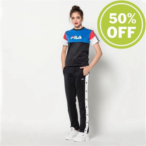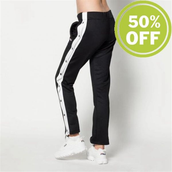 Pantalones Fila Mujer Negras / Blancas - Victoria Buttoned Track Retro Looking Sport With Buttons -
