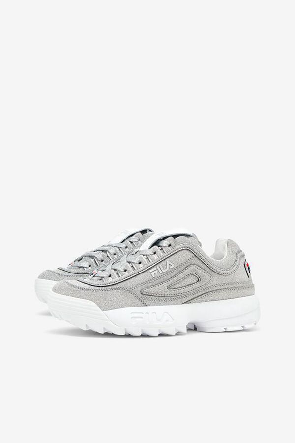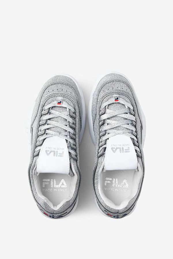 FILA has returned to its roots, as the newest iteration of the Disruptor 2 was “Made in Italy.” To further elevate this classic design, the shoe radiates glamour with its high optic, silver glitter upper. The signature FILA flag appears in the same hue, while silver laces also add sparkle for the perfect finishing touch.